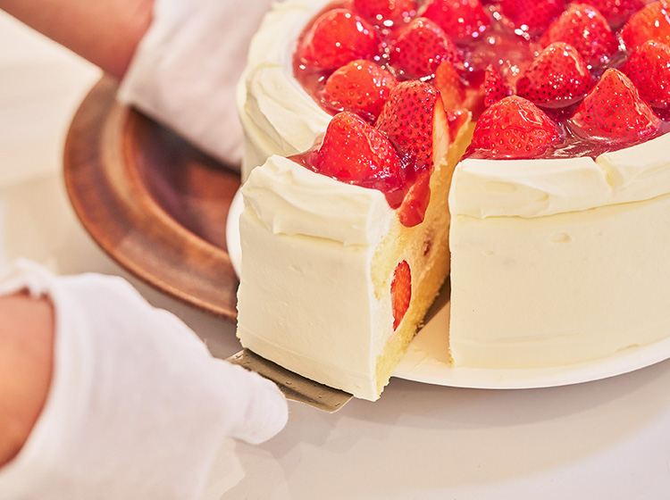 アントルメ、デコレーションの他に、ホールケーキを店頭でカットするカットケーキも人気です。